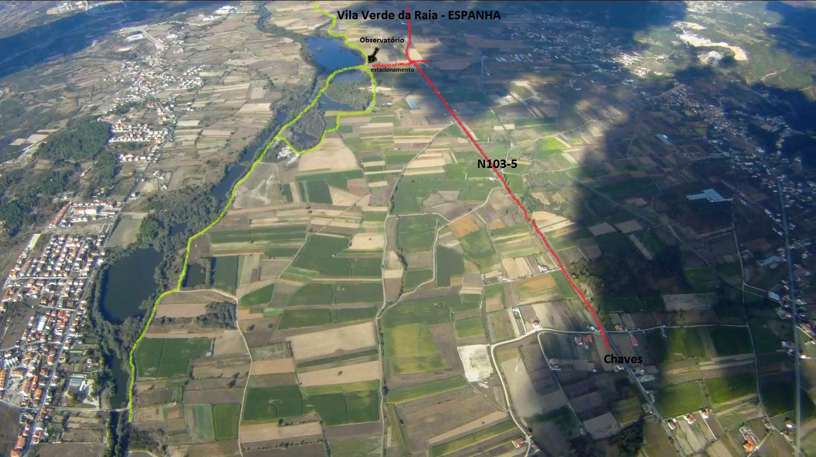 Deve-se tomar a estrada nacional N103-5, que sai de Chaves em direção a norte, Vila Verde da Raia e Espanha. Uns 3 Km após sair de Chaves, no sítio onde encontramos o cruzamento para Santo Estevão (à direita), viramos à esquerda, por um caminho de terra batida e após 230 metros encontramos a Ecovia do Tâmega e o Observatório de Aves junto à maior lagoa. Devemos estacionar, pois não é permitida a circulação automóvel na Ecovia do Tâmega. Existem diversos caminhos por onde nos podemos deslocar a pé ou de bicicleta, para a observação de aves. Na imagem abaixo destaca-se a verde um percurso que se sugere. Este percurso é principalmente na Ecovia do Tâmega, situa-se na margem do rio e é coadjuvado por um circuito em volta de três lagoas (com 2,5 Km) que permite também a observação de aves nos campos de cultivo.